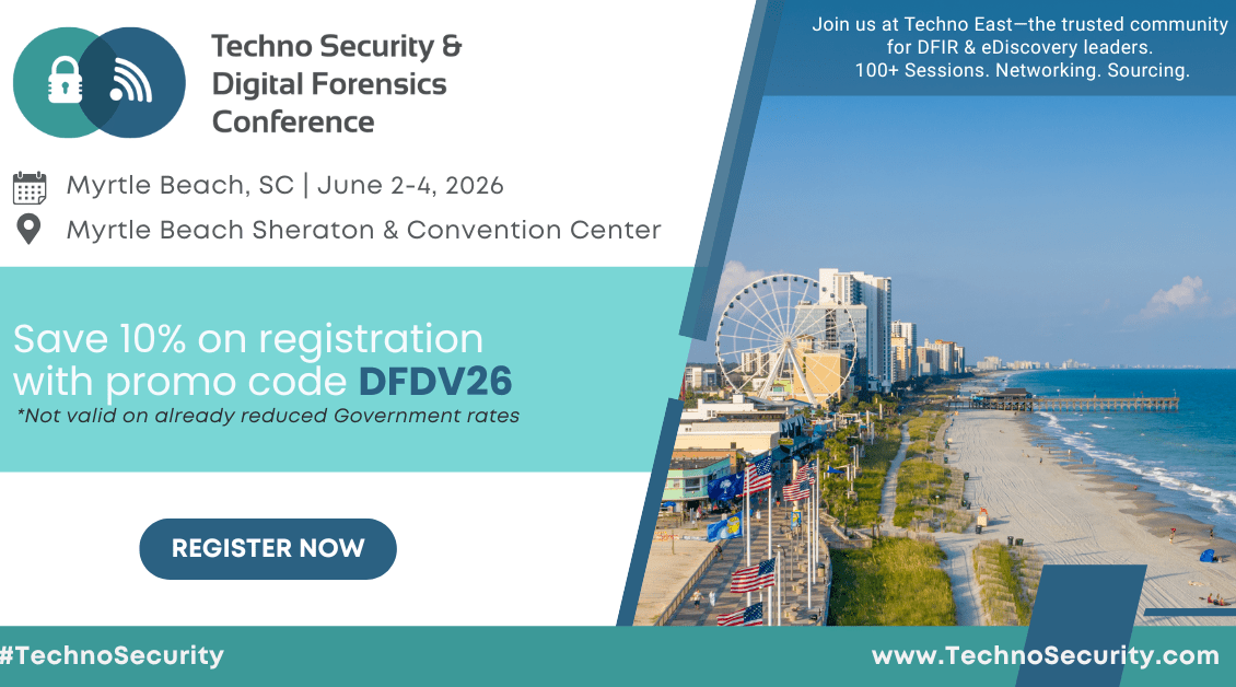 The 27th edition of the flagship Techno Security & Digital Forensics Conference will take place June 2—4, at the Myrtle Beach Sheraton & Convention Center in Myrtle Beach, SC. Join us for a unique education experience focused on the most active, urgent, and evolving areas of digital investigations impacting both the public and private sectors. The program is designed to address today’s challenges while preparing professionals for the future of DFIR. Educational sessions cover topics within the following primary tracks from which CPE credits can be earned: Digital Forensics, Incident Response, Financial Cyber Crimes, ICAC & Human Exploitation, AI and Emerging Tech in DFIR and eDiscovery, Compliance & Legal Technology.